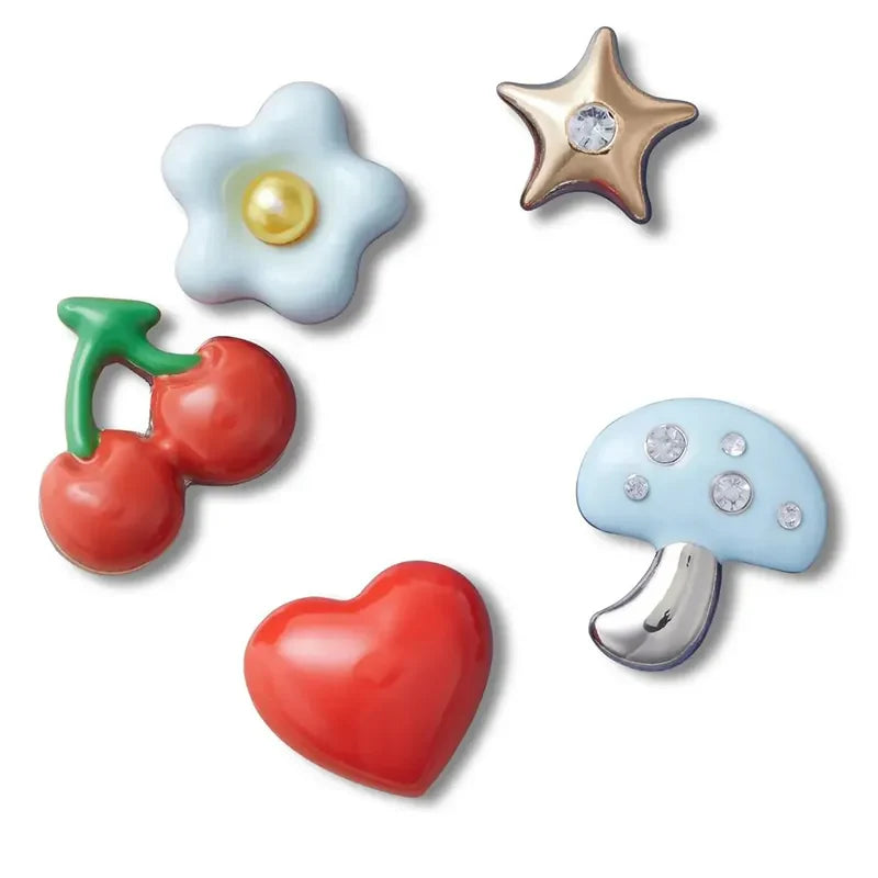 - أضف لمسة شخصية إلى حذائك مع مجموعة Jibbitz® من Puffy Metals المكونة من 5 قطع. إنها الإضافة المثالية لأحذيتك الخشبية والمنزلقة المفضلة لديك وغيرها.