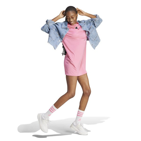 - الوصف: فستان تي شيرت فضفاض وشفاف مصنوع جزئيًا من مواد معاد تدويرها. ارتديه فوق ملابس السباحة أو مع حذاء رياضي سميك. هناك طرق عديدة لارتداء هذا الفستان من أديداس. خفيف، مرن، وشفاف قليلاً، يوفر تغطية مثالية لعطلات نهاية الأسبوع المشمسة. يلفّ الشريط الثلاثي الشهير ظهر الفستان، ليضفي لمسة أديداس المميزة على إطلالتك. مصنوع من سلسلة من المواد المعاد تدويرها، ويحتوي على ما لا يقل عن 70% من المحتوى المعاد تدويره، ويمثل هذا المنتج أحد حلولنا للمساعدة في القضاء على النفايات البلاستيكية.