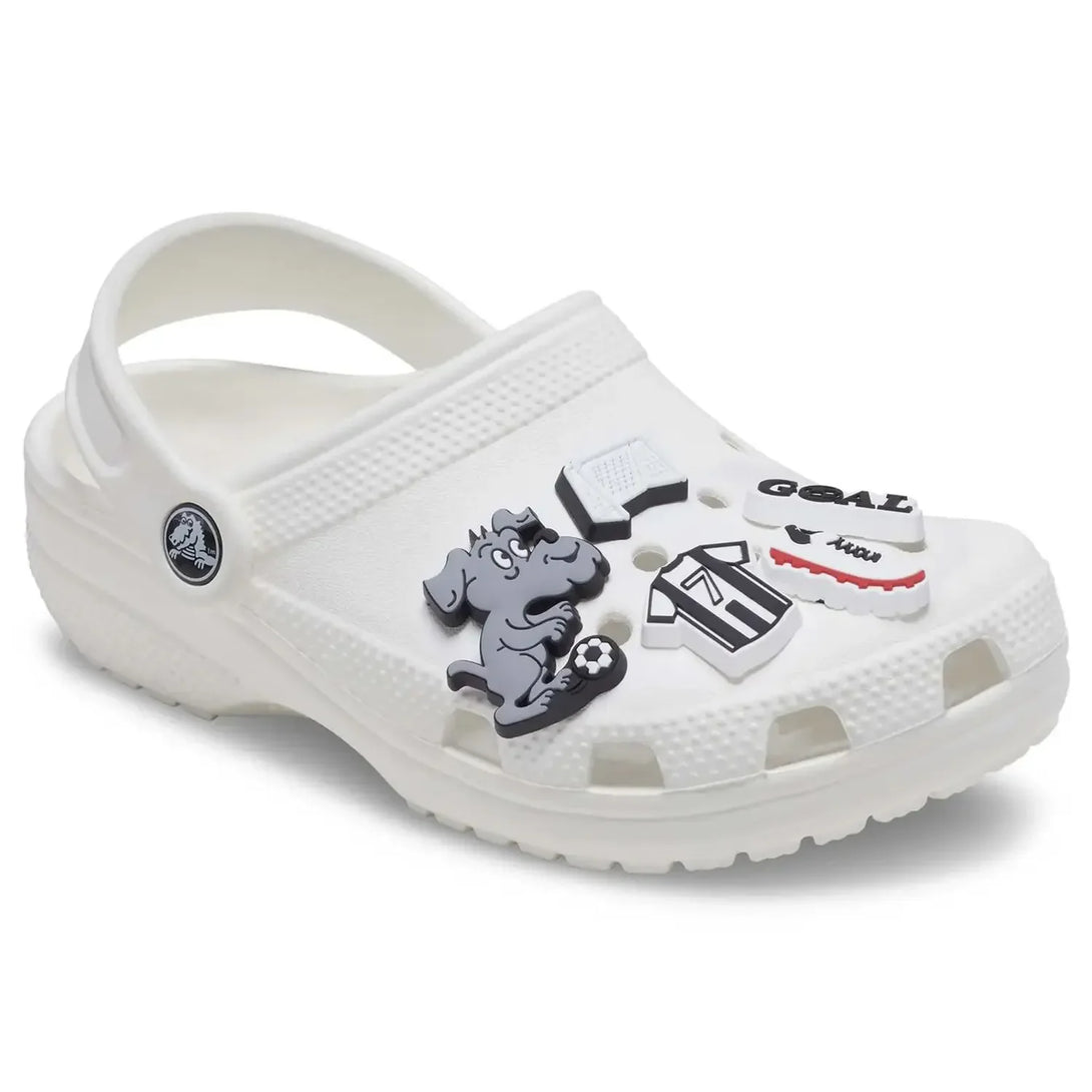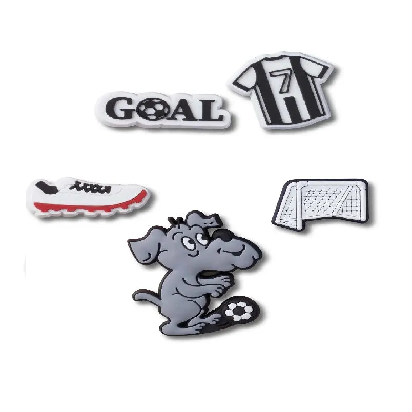 - Pop some personality into your shoes with these Soccer Goal 5 Pack Jibbitz™ charms. They’re the perfect addition to your favorite pairs of clogs, slides, and more. Not a toy. Not intended for children under 3 years of age.