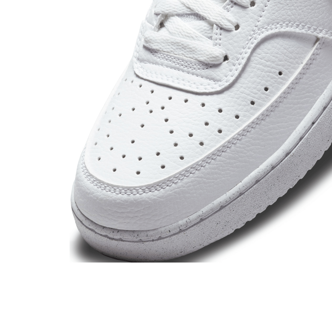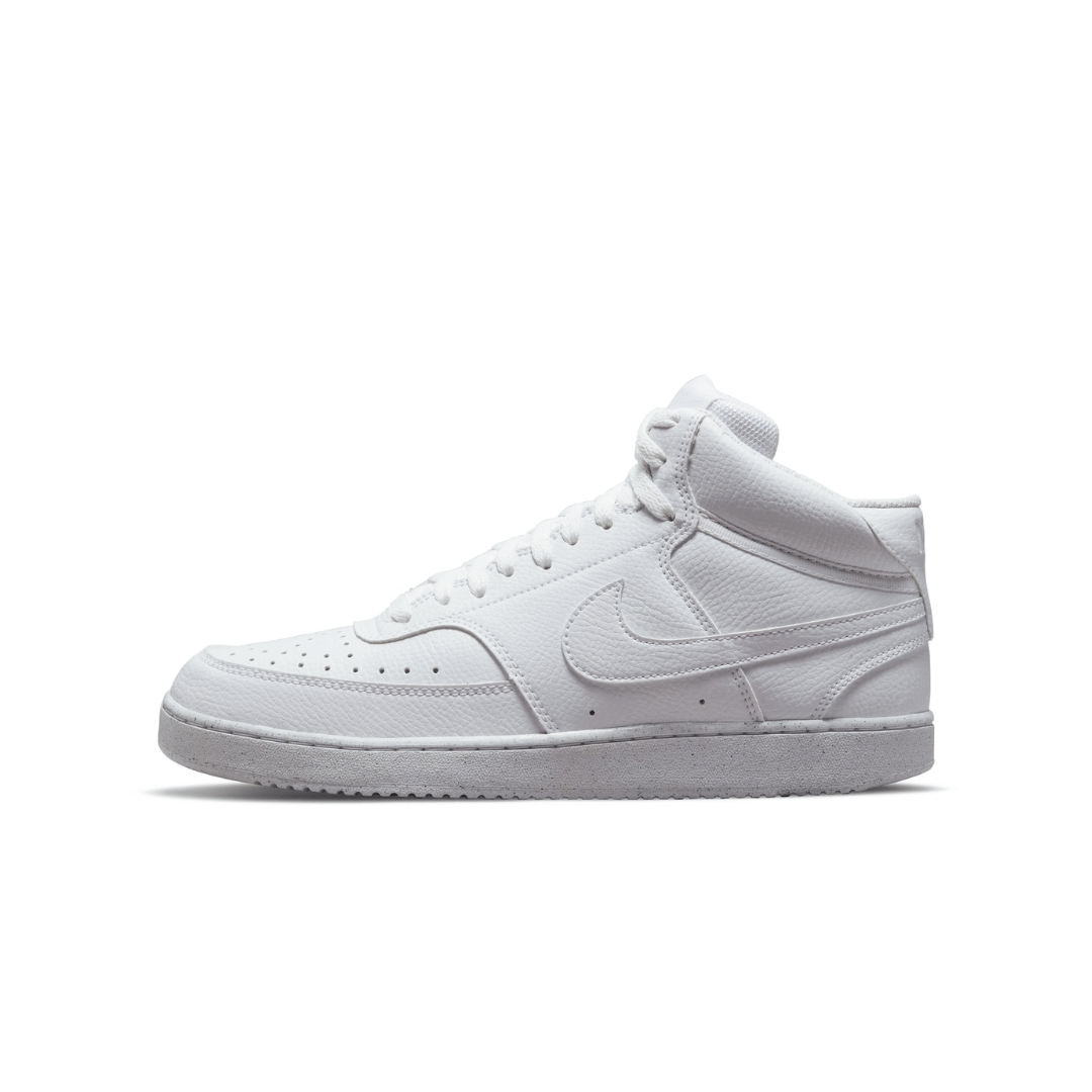 In love with the classic look of '80s basketball but have a thing for the fast-paced culture of today's game? Meet the Nike Court Vision Mid. A classic remixed with at least 20% recycled materials by weight. We replaced leather with recycled and synthetic materials that keeps the soul of the original style. Its crisp upper and stitched overlays stays true to its origins. The plush collar keeps it sleek and comfortable for your world.
