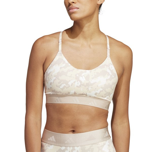 - Description: A Stylish Camo-Print Bra For Training, Made In Part With Recycled Materials. From Sun Salutations To A Sunset Hike With Friends, You'Ll Stay Covered And Comfortable In This Adidas Workout Bra. It'S Made For Light-Impact Workouts Like Climbing Or Weight Training, But That Doesn'T Mean You Won'T Work Up A Sweat. Aeroready Absorbs Moisture To Keep You Dry No Matter How High Your Heart Rate Goes. Made With A Series Of Recycled Materials, And At Least 70% Recycled Content, This Product Represents Just One Of Our Solutions To Help End Plastic Waste.